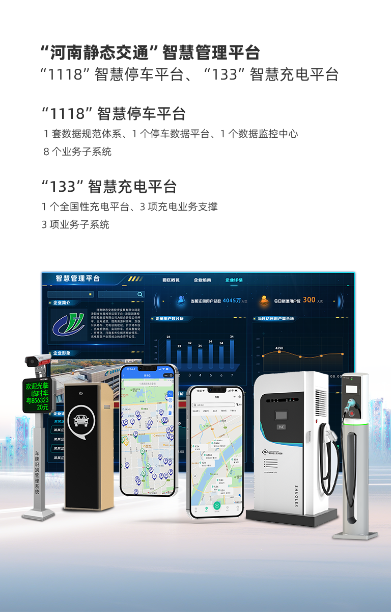 河南静态交通智慧停车以“四个体系“为业务架构,通过智慧停车云平台为核心业务,构建完整的智慧停车解决方案。